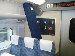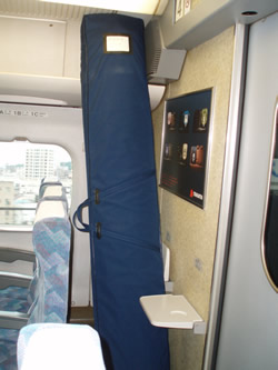 3つ席の中央の座席はリクライニングできないので、指定席を捨てて自由席に移りその席に座りました。(JR乗務員の方と相談いたしました。)