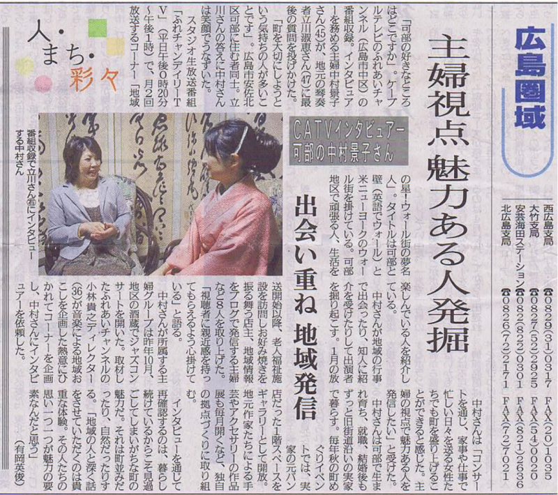 ボランティアレポータさん景子さんの記事(広島版)