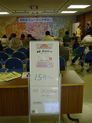 案内板です。区民センターの方がチラシ・プログラムを用意して下さいました。