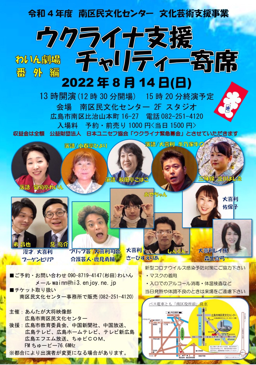 14日(日)13時〜南区民センター文化芸術支援事業 わいん劇場番外編 ウクライナ支援チャリティー寄席 主催:あんたが大将映像部