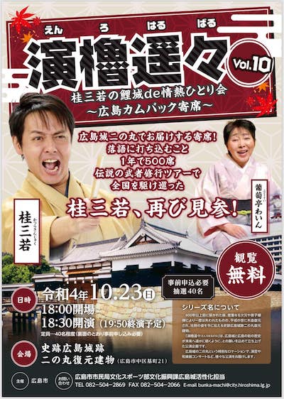 23日(日)「演櫓遥々vol10鯉城de情熱ひとり会」出囃子演奏 出演:桂三若・葡萄亭わいん