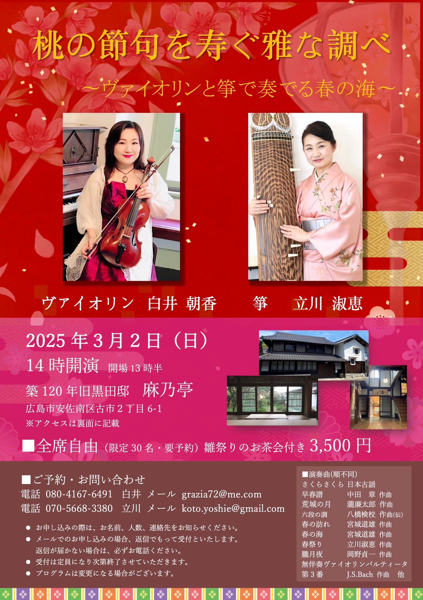 ヴァイオリン 白井 朝香 箏 立川 淑恵 |